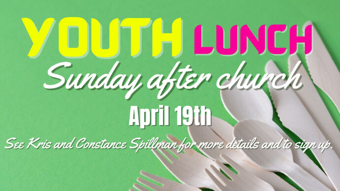 Sunday April 19th Youth luncheon and fun after the am service. See Kris and Constance Spillman to sign up.